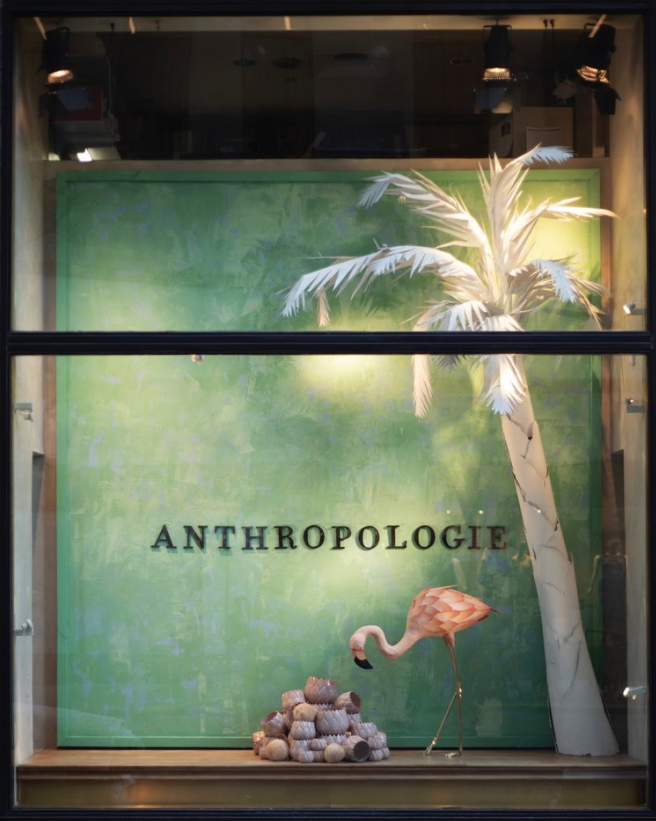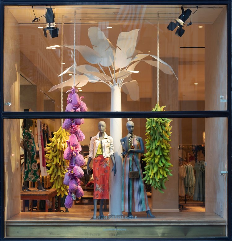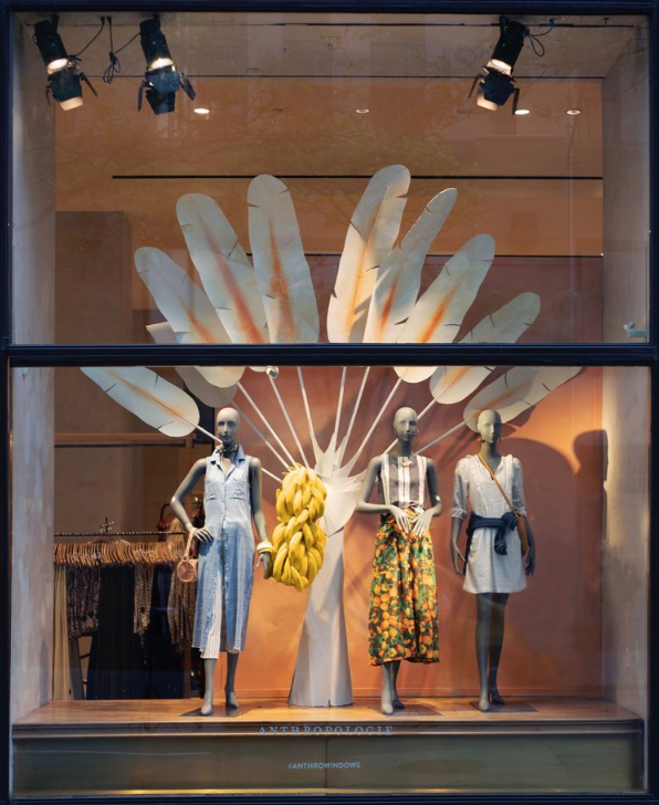Photos of the tropical display windows at the flagship Anthropologie store at the Rockefeller Center in New York City
